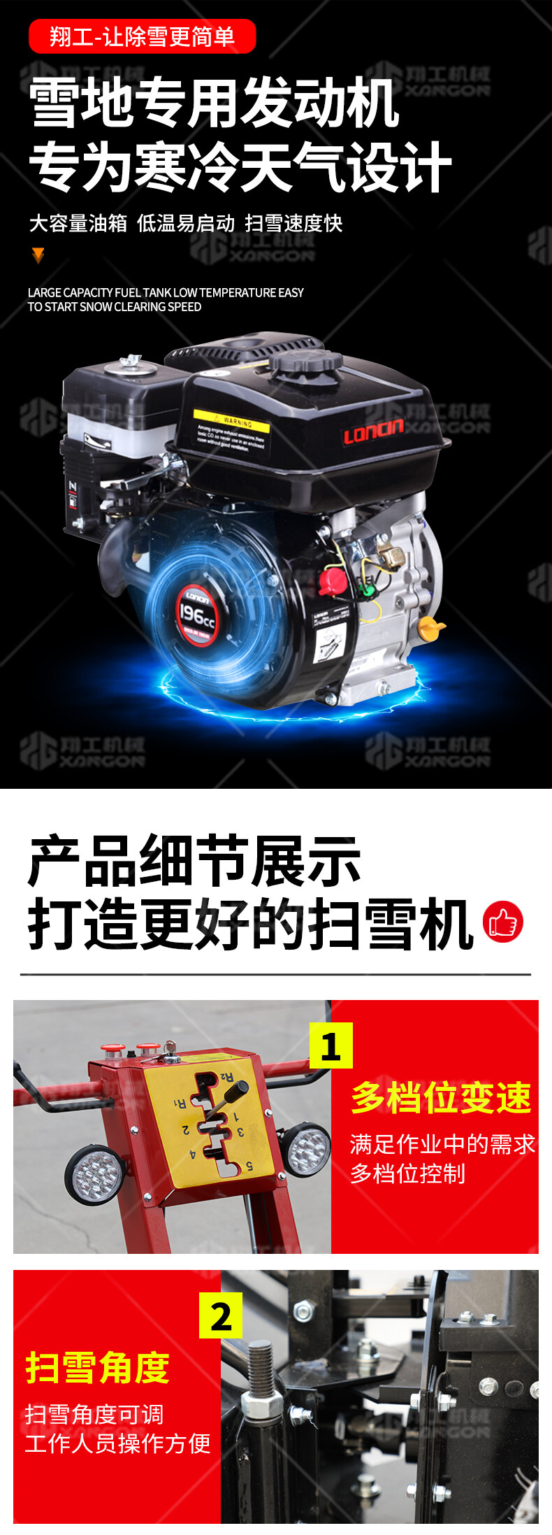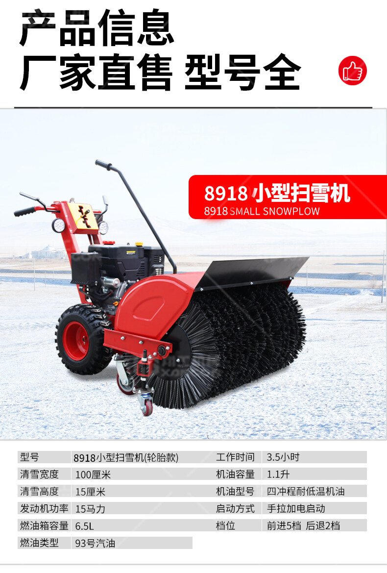 XG-8918小型掃雪機(jī)是一款地面拋雪機(jī),路面拋雪機(jī),道路拋雪機(jī)。這款拋雪機(jī)采用LC185F(D)S,OHW 4-stroke發(fā)動(dòng)機(jī),強(qiáng)勁有力。葉片高速旋轉(zhuǎn)將雪旋進(jìn)掃雪車?yán)?,再通過導(dǎo)管運(yùn)到儲(chǔ)雪箱中。其特點(diǎn)是:采用大功率主機(jī),寬幅、高效,使用較廣。